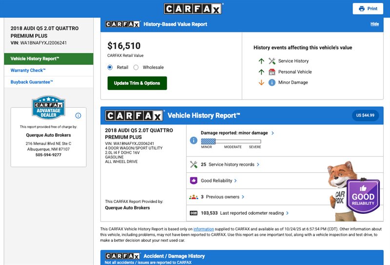 At Querque Auto Brokers, every car undergoes a thorough inspection and is FULLY RECONDITIONED and detailed before it's offered for sale. We are proud partners with CARFAX and Edmunds.com. We work strictly by appointment as our vehicles are stored in a warehouse. We are a destination for good cars under $20,000. We only sell vehicles good enough for mom, inspect thoroughly, offer a 3-month/3,000-mile warranty free to you, and disclose all we know about every vehicle.